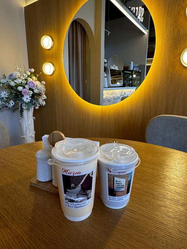Красивое пространство в зеркалах. Один из не многих бариста, когда попросили поменьше сиропа, действительно сделал не сладкий кофе с нужным вкусом