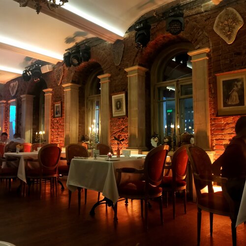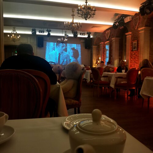 Это место — просто в самое сердце! Хочется тепла, уюта, особенной атмосферы? Вам сюда. Можно прийти одному или с близкими, в любом случае не останетесь без внимания и заботы. Обширное меню, вкуснейшие напитки (к ним комплимент в виде мини-макаруни) и десерты. Все такое утонченное. Впечатление, как будто телепортировался в другую эпоху или локацию. Никакой суеты. Свечи и цветы на столиках, при необходимости их обновляют (довольно часто — "любоваться" увядшей розой или погасшей свечой не придётся). Первый и второй этаж несколько отличаются, но и там, и там прекрасно. Даже уборную, пардон, хочется отметить: стильно, комфортно (даже уютно, как дома, а не в общественном месте), все чисто и благоухает ароматами, полотенчики, гель, крем для рук с восхитительным запахом. Всегда подадут пальто, встретят и проводят, как своих. Персонал очень дружелюбный, все оперативно, буквально по взгляду в их сторону, и с улыбкой. Фото прикрепила только со второго этажа: там вечерами крутят черно-белое кино, за каждым столиком есть "сопровождение" в виде плюшевого огромного медведя — отдельный восторг. Кругом свечи, канделябры, книжные шкафы, зеркала, само здание старинное... Не хочется уходить. Оставайтесь, пожалуйста, всегда такими чудесными)♥️🤗 Тем, кто хочет посетить, — лучше делайте заранее бронь.