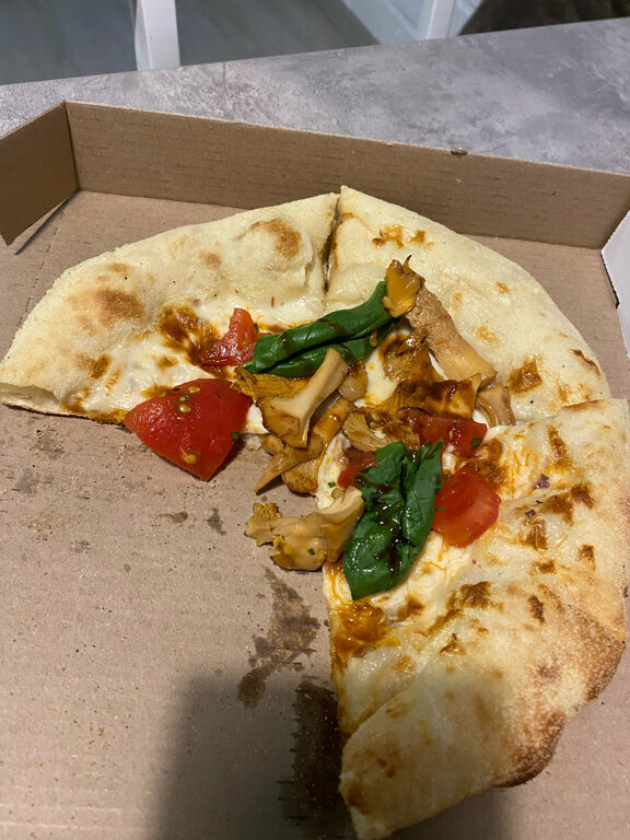 Доброго времени суток! Люблю Y Bistro всей душой! Лучше рисовой каши и десертов я в Че не ела! Буду приходить за ними ещё и ещё! Основное меню так же люблю, но тут случилось необъяснимое…Вчера с супругом заехали за вкусным ужином. Решили взять домой, дабы спокойно и вкусно покушать дома за сериальчиком. Курица в бульончике оказалась не в бульоне, а в соусе. Ко вкусу претензий нет, хотя официант сказала, что курица будет не «сувид», а она «сувид» (вроде…):) Но разочарование ждало впереди и это была пицца из спец. предложения, с лисичками. Лисички видимо просто запекались на пицце, но эти грибы стоит сначала обжарить, т.к. готовятся они долго. Когда ели пиццу грибы казались сырыми. Но главная беда - вид блюда… Ну как так…ее как-будто взрывали…😢 Начинка накидану уж очень небрежно и неоднородно (фото) Нам показалось очень не эстетично и не так чтобы вкусно. Надеюсь другие блюда из отдельного меню будут лучше:)