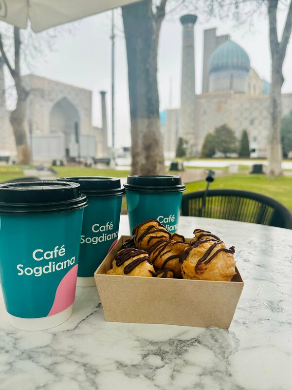 Кофе и профитроли с видом на Регистан. Ну, прелесть! Ценник обычный, кофе вкусный. Рядом платный и чистый туалет. Посидеть, передохнуть, хлебнуть напитка или слопать мороженое в парке с таким видом - рекомендуем!