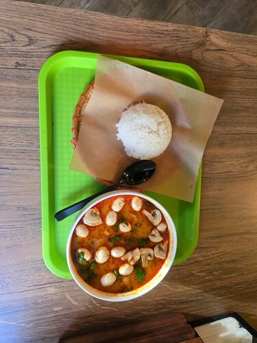 Давайте так: это по сути вьетнамская столовая, где работают настоящие вьетнамцы, вы за стойкой выбираете блюдо, забираете на подносе и потом его ставите в грящеую посуду, все как в школе) Зал тоже, как в школе, совершенно простой, пластиковые стулья, столы, которые далеко не идеально чистые, все очень просто. Но самое важное: у них отменная кухня и огромные порции. Ребята из коворкинга сверху ходят и хвалят, а я оценила их размер и вкус том яма: на среднего мужчину этой порции хватит за глаза, и главное все же это еда и ее качество, а за 690 рублей-просто идеально)