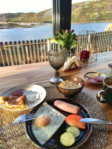 Теплый, радушный, домашний прием!!! Завтраком можно наесться на весь день. И даже когда мы уезжали в 6 утра, нам пожарили оладьи и 100 раз предложили поесть, несмотря на то, что мы сказали поедем без завтрака, тк рано уезжаем. Мариночка посушила нам пуховики и даже рукавчики вывернула. Ощущение, будто побывали в гостях у родственников. Кроме этого дом комфортно оборудован, есть стационарная сушилка для обуви, классная терраса, все расходники и даже одноразовые зубные щетки с пастой. В доме очень тепло, чисто, все удобства, ещё понравилось, что в номере круто продумано освещение. Точно приедем еще и даже вопрос не возникает где остановиться!)