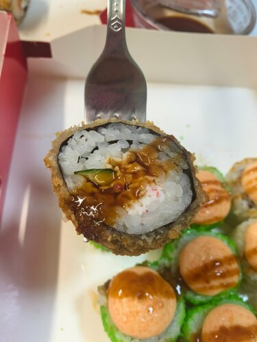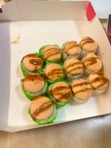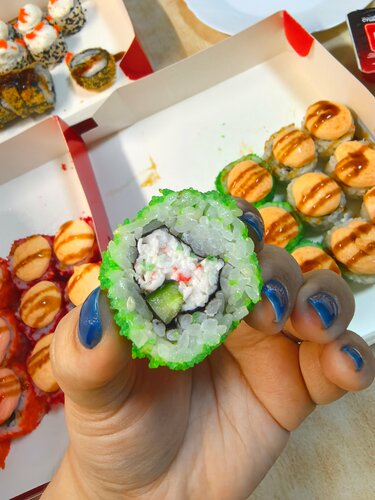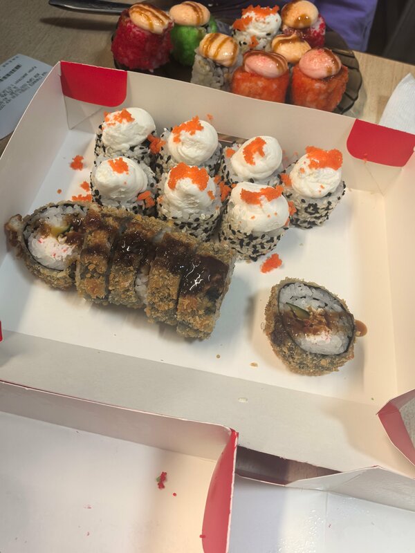 Заказали 01.04 на 2000р. Пришло вот это... Роллы маленькие, начинки вообще почти нет, раньше брали было всё отлично, сейчас какой то ужас... В следующий раз подумаем брать или нет здесь. Как то раз заказывали было тоже самое, а иногда нормальные, не угадаешь, видимо от повара зависит. Видно что по весу и размеру не так как заявленно...