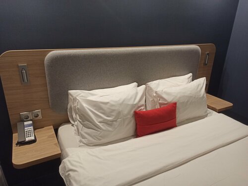 Плюсы: Расположен в тихом районе Стильные и продуманные номера Гладильная доска и утюг в каждом номере Качественная кровать и сантехника Интересные световые решения Хороший завтрак - шведская линия Бесплатная стоянка на территории Рядом парк Минусы: Далековато до магазинов В номере не закрывалась герметично душевая кабина и плохо уходила вода Особенности: Много народа на завтраке, очереди к кофемашинам и блюдам