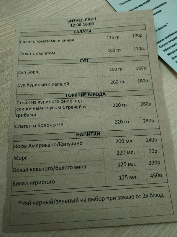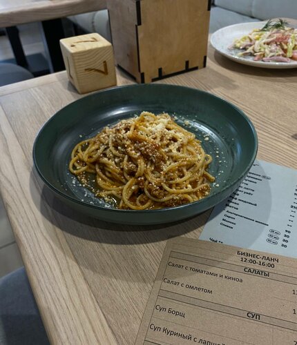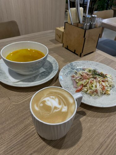 Стильное приятное заведение, хочется засидеться с ноутбуком (пока ни разу так не делал) так, как всё время попадаю сюда, по дороге куда-то, но думаю буду практиковать в дальнейшем:) Сегодня поглотил огромный бизнес ланч за 700± рубчиков купил 3 блюда и капуч, можно взять и по отдельности, но я был очень голоден, порадовало, что еду принесли быстро. Потом ещё бахнул бокальчик вина за 290 рублей, вино понравилось, как и всегда, с этим напиточком тут всё в порядке. Круто, что в академе появилось такое место, да ещё и недалеко от дома.