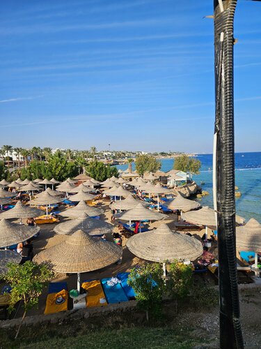 Отдыхала в этом отеле в ноябре 2024 года. Очень хорошие впечатления. Огромная ухоженная территория 2х отелей в сети. Очень интересные горки в акварарке, как для взрослых, так и для детей. Есть отдельные бассейны, один с подогревом. 2 ресторана с разнообразным шведским столом, 3 ресторана аля карт. Всегда в меню присутствует гриль, всегда присутствует рыба. Всё вкусно, любой найдёт блюда по вкусу. Хороший выбор фруктов: дыни, арбузы, гуава, апельсины, мандарины, финики, яблоки, груши. Выпечка отменная, будьте осторожны, трудно остановиться. Персонал вежливый, приветливый, не навязчивый, номера уставшие, но кровать и постельное белье чистые, новые. Полотенца меняют ежедневно. Номер убирают также ежедневно. Есть сейф в номере. Сам отель расположен на первой линии Наама бей. Выхода к морю нет. Это и минус, и плюс одновременно. Для меня это было преимуществом. У сети отелей 2 собственных пляжа, на которые возят автобусы. Первый пляж песчаный - идеальное место для семей с детьми. Второй пляж коралловый с собственным пирсом. Именно с пирсом, а не с пантоном. Отличный коралл с большим разнообразием и количеством рыб для любителей сноркинга. Правда на автобусы надо записываться с вечера. Также вечером ежедневно в 20 часов автобусы возят от отеля на пешеходную часть Наама бей и площадь Сохо. Есть детская анимация, ежедневно развлекательная вечерняя анимация и шоу для взрослых. Мы остались довольны, т.к. в Египет приезжаем на красивое море, и все это время жили в комфортных условиях.