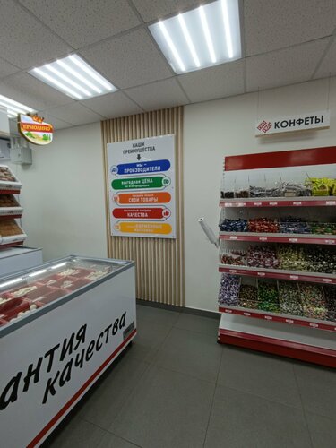 Мне очень понравился этот магазин. Я в нем постоянно покупаю пиццу и тортики. Продукты так же есть и натуральные. Огромный выбор блинчиков и пельменей. Советую. Персонал адекватный, помогают упаковать купленный товар