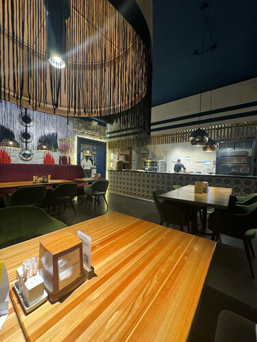 Приятное заведение, быстрое обслуживание, вкусные чебуреки, шашлык, десерты. Большое помещение, открытая кухня. Любим приходить всей семьей