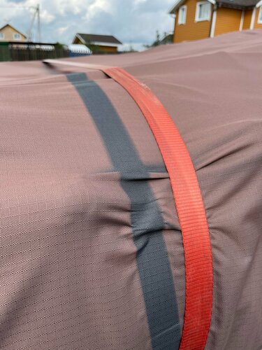 Заказала транспортировочныйчехол на лодку. Отшив и доставку задержали, поэтому в отпуск пришлось ехать со старым и протестировать обновку не удалось. Обновка пришла в красивой сумке. Швы проклеены, цвет - что надо, лекала прекрасны. Разочарование пришло при первой примерке, когда одна из строп оторвалась. При ближайшем рассмотрении оказалось, что все стропы держатся на одной строчке. Ещё интереснее стало, когда чехол из тёмно-серого за две недели превратился в серобульмалиновый… Ценник за чехол один из самых высоких, предполагалось, что качество ткани и пошива должно было соответствовать.