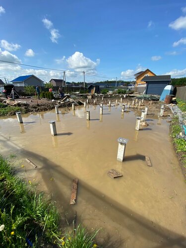 Профессиональная бригада, уверенная работа менеджера. Был произведён монтаж свай на сложном участке: ограничения по периметру (в котловане), сложный въезд, обводнённые грунты с валунами. Техника перемещалась по фанере, трактор работал без перерыва. Монтаж растянулся на три дня, тем не менее - фундамент готов к возведению дома.