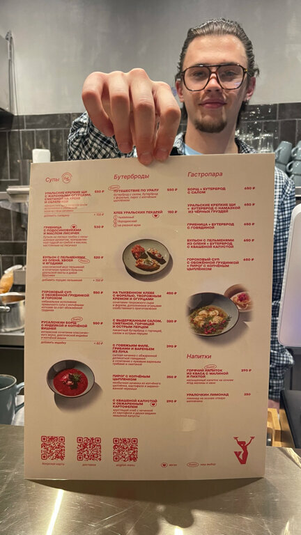Потрясающая русская кухня! Если хочется домашнего, но ресторанного. Заказывала борщ, очень впечатлило сочетание классического борща с вишней с дымком. И довольно сытно. Обязательно вернусь! Советую брать пару с бутербродом.