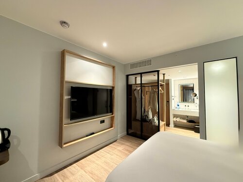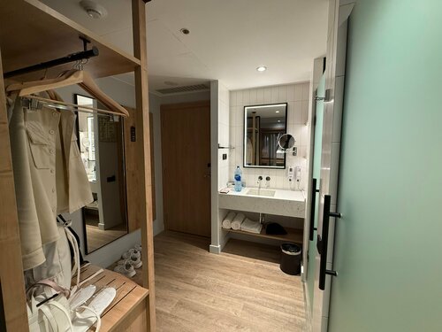 Хороший отель, очень удобное месторасположение. Рядом метро, магазины, кафе, торговый центр. Смущает немного рижский вокзал, так как много людей постоянно и ходят поезда. Но их слышно не было. Номер чистый, ухоженный, современный. Есть все необходимое (гель для душа, лосьон для тела, зубная щетка и паста, шампунь, тапочки, халат, набор полотенец, фен, чайник и бутилированная вода) Наш номер был с видом на улицу, дороги было не слышно. Единственный минус- когда кто то разговаривает в коридоре, то все слышно. Но это не критично. Есть камера хранения, можно оставить вещи до заселения. Также на первом этаже есть ресторан, где подают утром завтрак (шведский стол) Отель современный и уютный, с удобным местоположением, до достопримечательностей легко добраться на метро. Данный отель могу посоветовать к заселению.