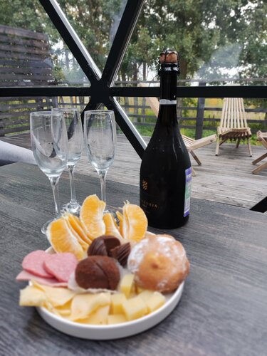 Очень понравилось. Жили в купольном доме с отдельной ванной комнатой. Нас было трое взрослых. Места вполне хватило. Все сделано очень современно, стильно и удобно. Заказывали чан с температурой 42 градуса. Балдели больше трёх часов. Это было просто офигенно. Заказали английский завтрак - вкусно. Брали в обед уху - то же было ооочень вкусно. Обслуживание на пять с плюсом. Есть не большое замечание. Кадки с искусственными туями совсем не украшают территорию глемпинга. Ну и надо бы поработать над ландшафтным дизайном, хотя бы травку покосить. Заброшенное здание не вызвало никаких отрицательных эмоций. Напротив, видно, что есть простор для фантазии. Нам всё ооочень понравилось.