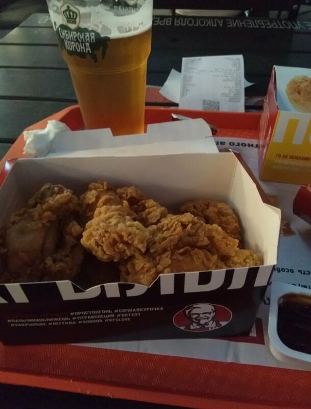 Быстро обслужили хоть и народу было много ждать особо не пришлось. Острые крылышки - просто огромные в отличие от кфс в других городах. Персонал благоприятный. Все вкусно как положено! Большой лайк!