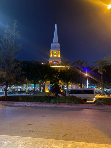Очень гармонично смотрится в центре Кемера часовая башня. Учитывая, что Кемер весь в рынках и мелких кафе, башенка украшает городок. Красиво подсвечивается ночью. Территория окружена зеленью и кафе. Мы использовали её как ориентир на местности 😄
