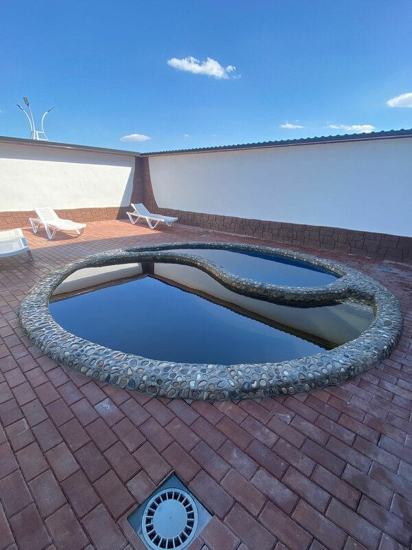 Бронировали дворик за 1500/час с выходом в общий бассейн. На общей территории есть сауна. Раздевалку не нашли, поэтому переодевались в душевой. Все чисто, отдохнули от души, были проездом, поэтому 3 часа маловато. Заказывали обед из чёрного меню (из кафе соседнего здания), обед на 3-ку.