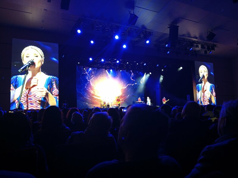 Далековато от города, но зато очень много плюсов, это большая бесплатная парковка и двойная система безопасности. Посещали концерт, зрительный зал большой, поэтому 15 ряд как-то был далековат от сцены, но благодаря техническии решениям и большим, четким экранам мы получили 100% удовольствие.