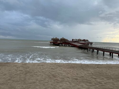 Песчаный берег, много лежаков, рядом бар, еда. Очень красиво, но остров был закрыт. Надеюсь что скоро все доделают и будет открыто и работать