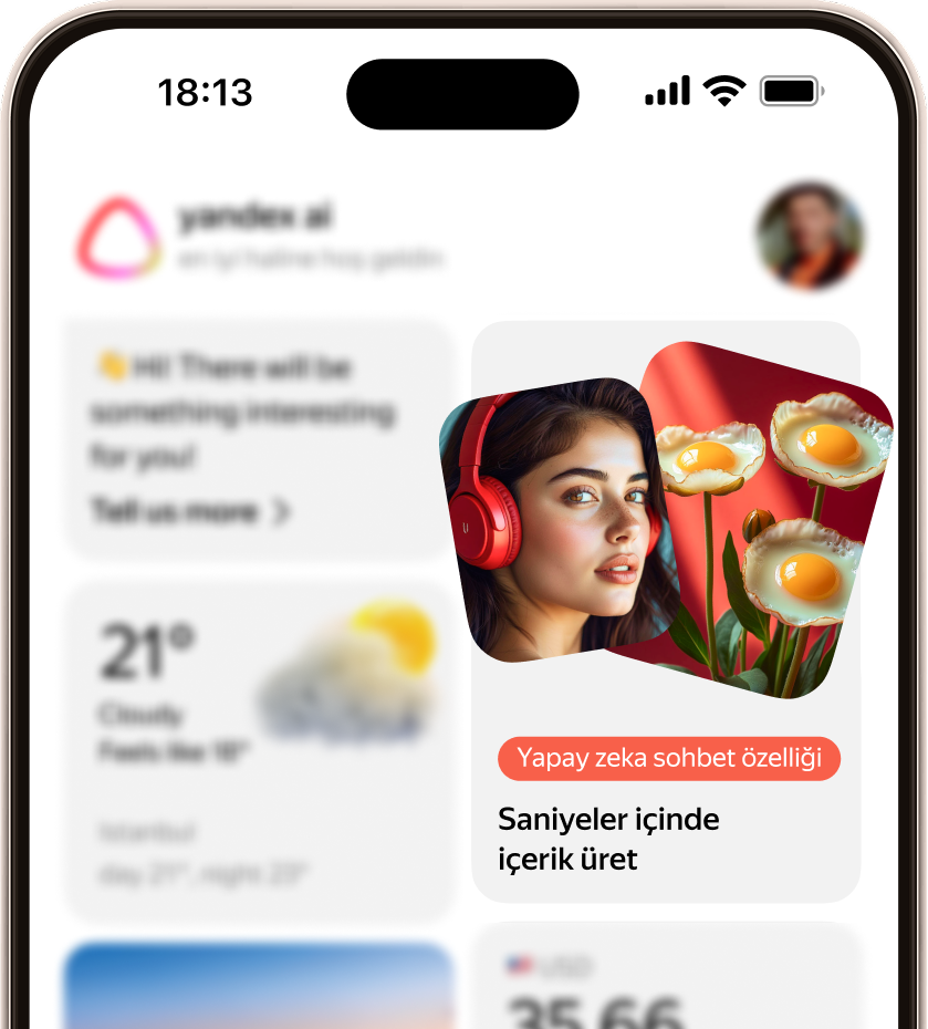 Yeni Yandex AI uygulaması internet deneyimini yeniden tanımlıyor. Gelişmiş araçlarla düşüncelerini düzenleyebilir, derslerini ve işlerini kolayca yönetebilir, günlük hayatını daha verimli hale getirebilirsin. İnternette zahmetsizce gez, işlerini hızla tamamla, yeni becerileri kolayca öğren, özgün içerikler oluştur ve tüm bunların keyfini çıkar.