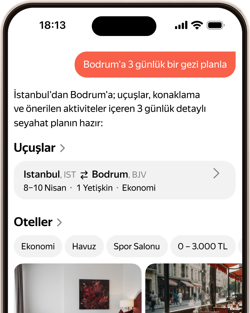Yandex’in yeni yapay zeka uygulaması internet deneyimini yeniden tanımlıyor. Gelişmiş araçlarla düşüncelerini düzenleyebilir, derslerini ve işlerini kolayca yönetebilir, günlük hayatını daha verimli hale getirebilirsin. İnternette zahmetsizce gez, işlerini hızla tamamla, yeni becerileri kolayca öğren, özgün içerikler oluştur ve tüm bunların keyfini çıkar.
