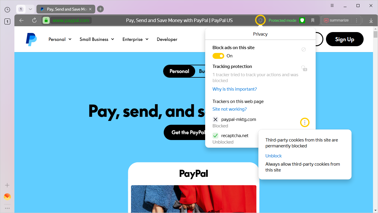 Some sites can't function properly without using third-party cookies. For example, you purchase a ticket online, but then you can't choose your seat because that part of the site stops working. If a site doesn't work, try to disable tracker blocking: