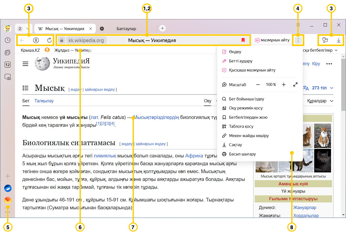 Іздеу жолына сайттың мекенжайын немесе сұрауды енгізіңіз. Іздеу сыбырсөздері арасында ауысу үшін мәтін енгізгеннен кейін көрсеткілерді немесе Tab пернесін қолданыңыз. Сондай-ақ сіз Көшіріп алу, Парақшаны Бетбелгілерге қосу