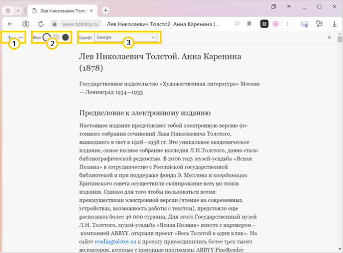 Чтобы освободить немного места для текста, можно убрать с экрана верхнюю панель бета-версии Яндекс Браузера. Для этого перейдите в полноэкранный режим, нажав F11. Для выхода из полноэкранного режима повторно нажмите F11.