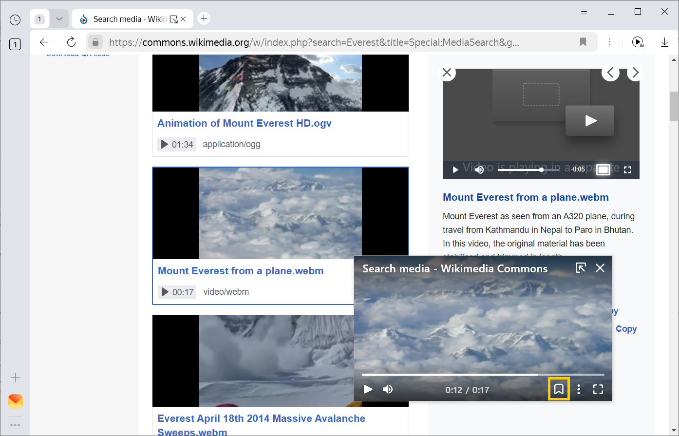 . The video opens in a separate window. - In the bottom-right corner of the separate window, click