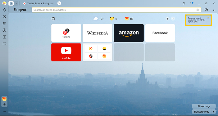 Yandex services send notifications about weather changes, traffic conditions, emergencies, and other events. You can choose what kind of notifications you want to see.