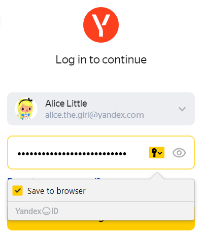 If you enter a password with no username, Yandex Browser suggests a previously saved username.
