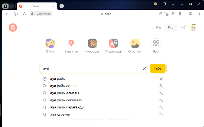 Мекенжай жолағына іздеу сұранымдары енгізуге болады — Браузер сізге не керектгіні өзі түсінеді.