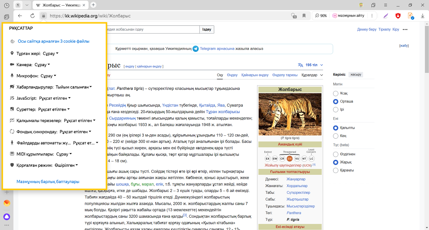 Әдепкі бойынша, барлық сайттарға cookie сақтауға рұқсат етіледі.