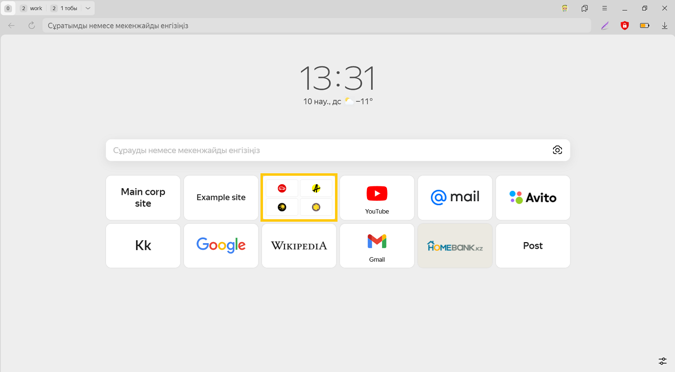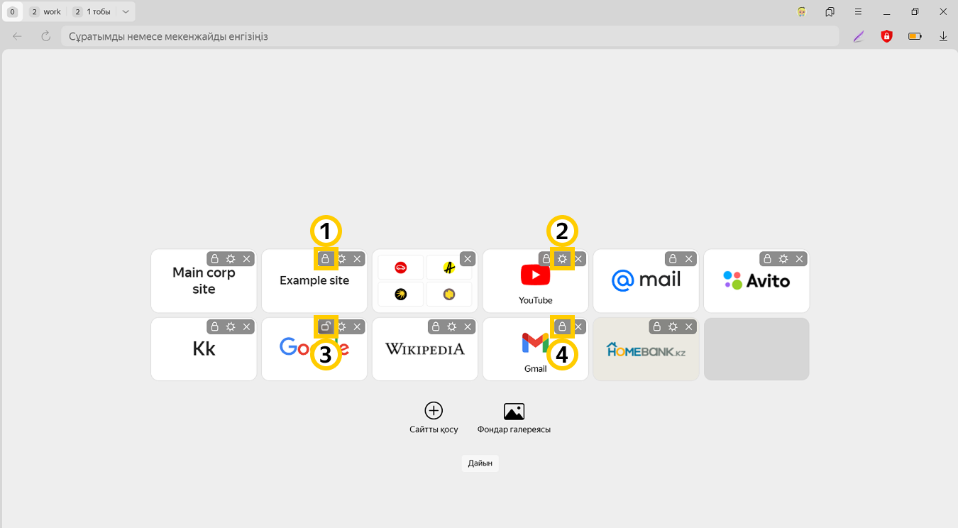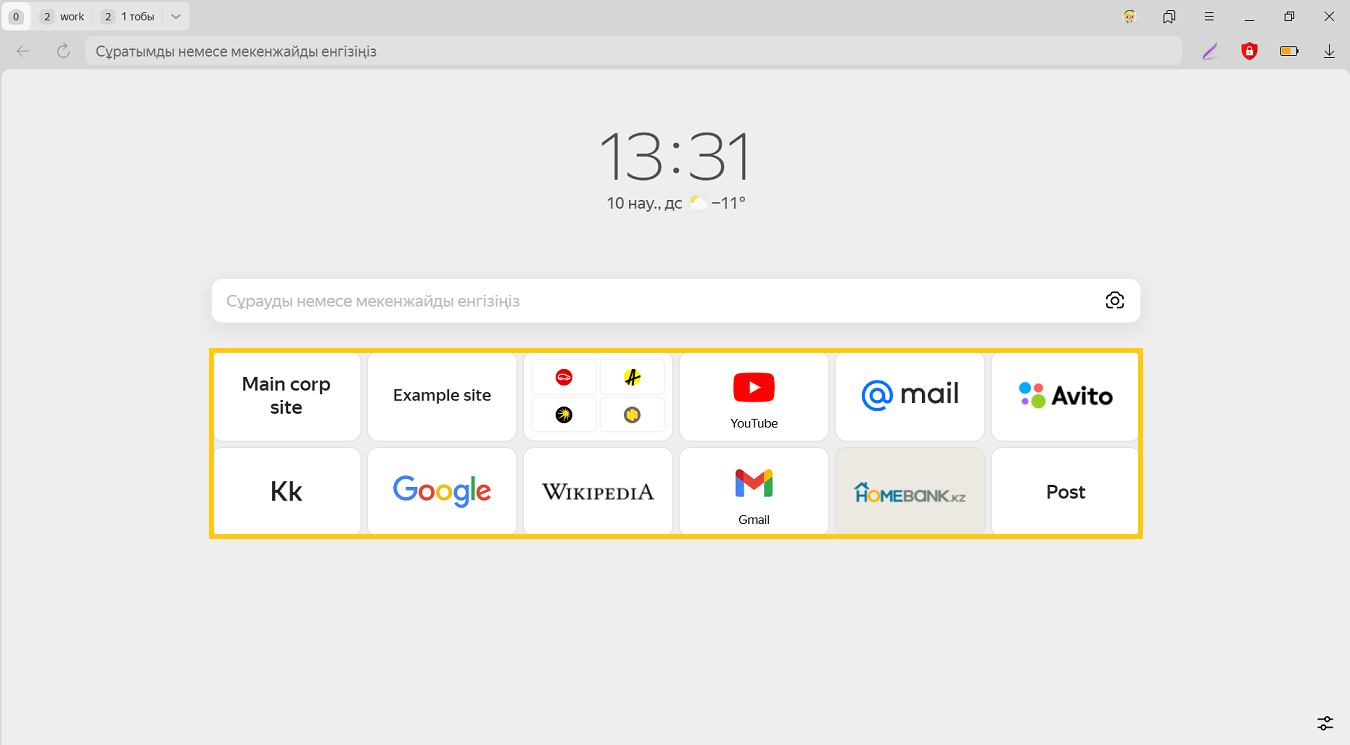 Қажетті сайтқа өту үшін плиткаға басыңыз (онда сайттың таңбасы, егер сілтеме бойынша сайттың басты парақшасы ашылмаса, парақшаның атауы көрсетіледі).