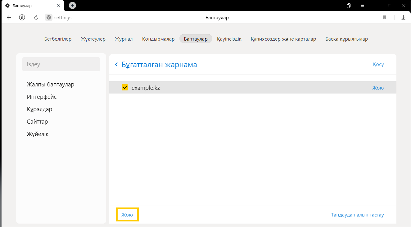 Егер Яндекс Браузер болса, оны қара тізімге өзіңіз қоса аласыз. Бұл жағдайда Браузер сізге бұл суретті көрсетпейді: