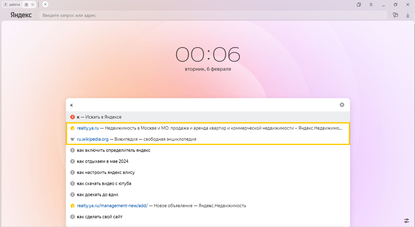 Если вы авторизованы на Яндексе, то ваши запросы сохраняются по умолчанию. В подсказках под строкой поиска будут отображаться запросы, которые вы задавали ранее. Кроме этого, сайты, на которые вы часто заходите, – первые в списке поисковых подсказок.