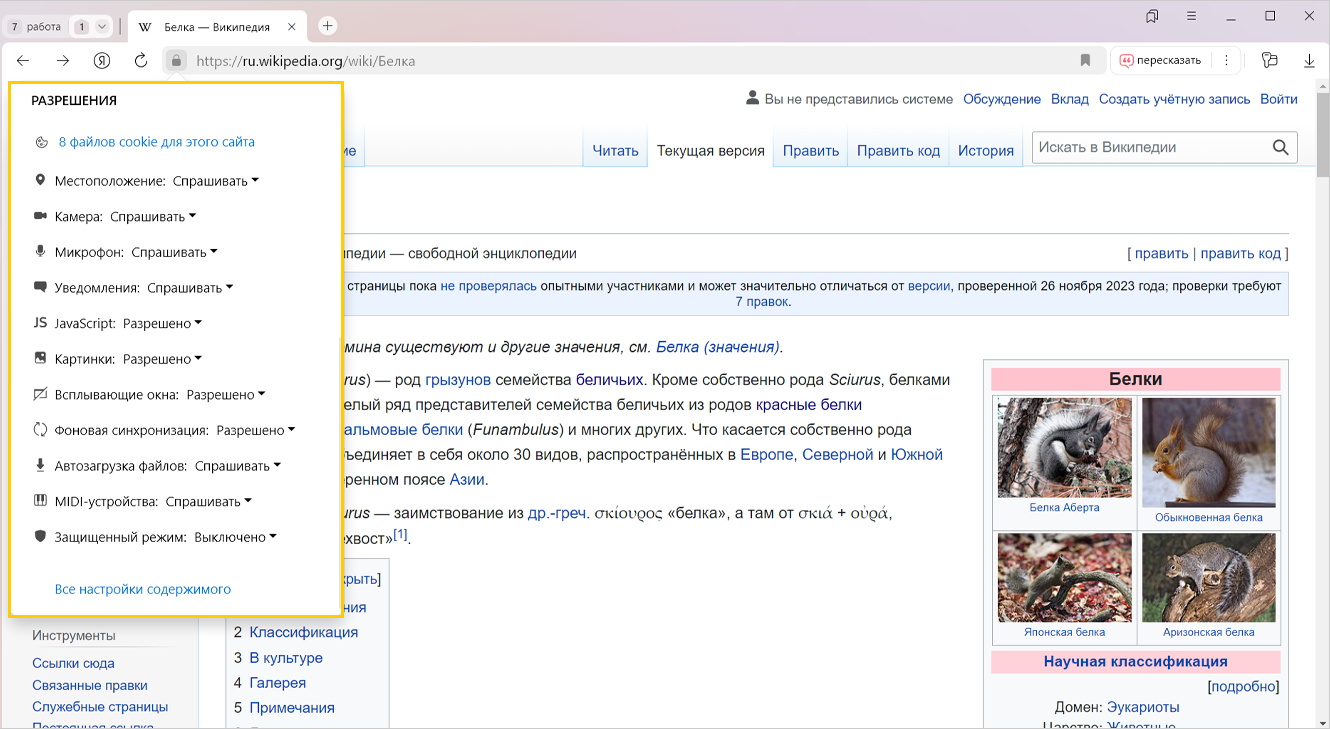 По умолчанию в Яндекс Браузере разрешено сохранять файлы cookie.