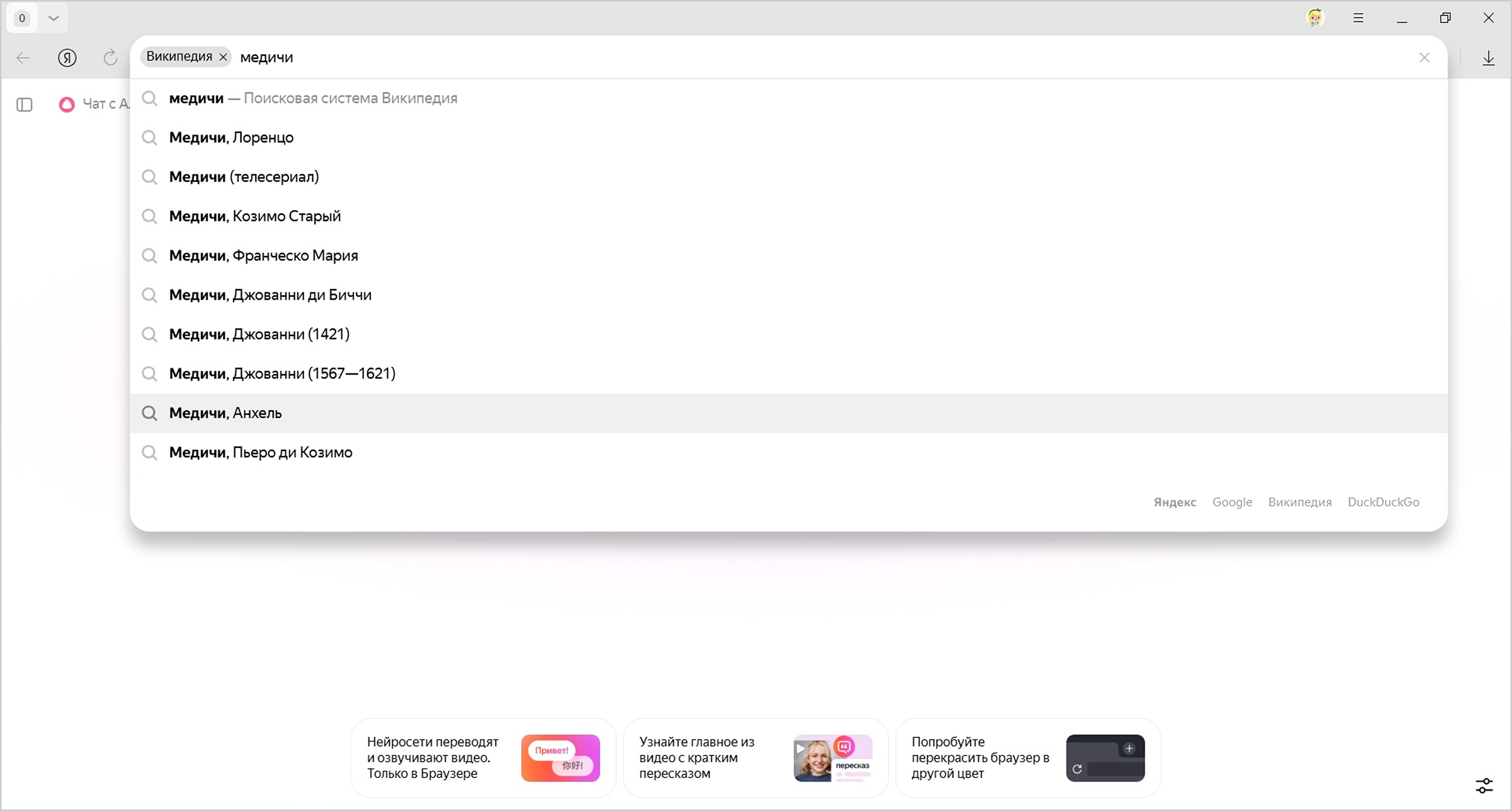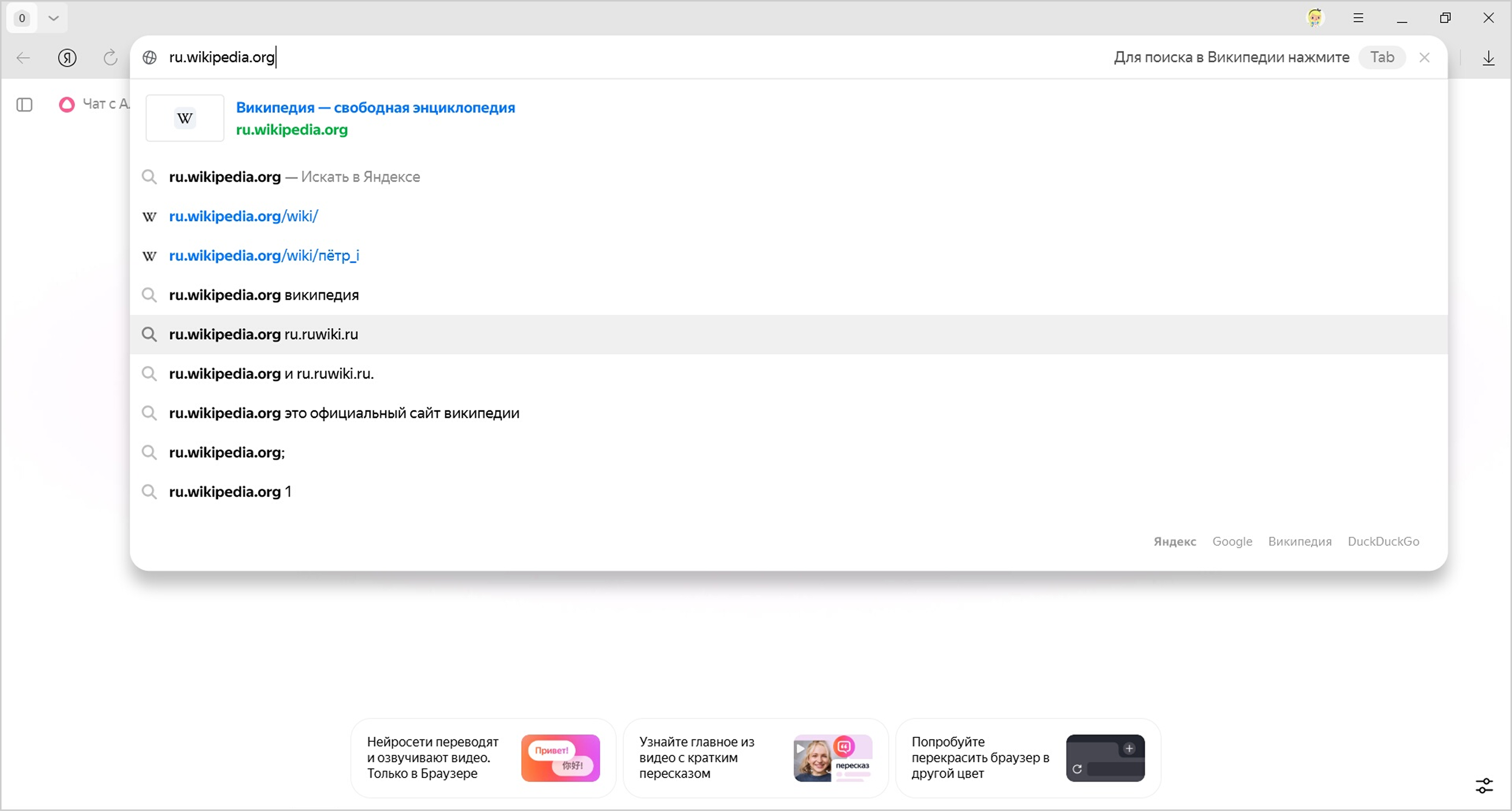 • Если вы неправильно набрали адрес, Браузер выведет несколько ссылок на существующие страницы с похожим адресом или предложит поискать в Яндексе.
