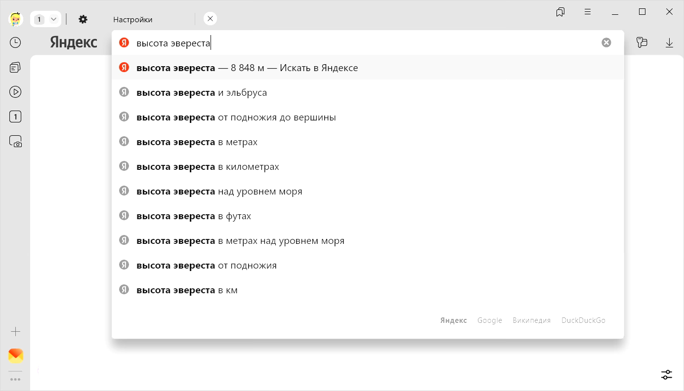 Браузер умеет давать ответы на часто задаваемые запросы прямо в поисковых подсказках. Например, вы можете узнать высоту Байкала или высоту Эвереста, не переходя к результатам поиска. Еще вы можете ввести в Умную-строку номер телефона, по которому вам позвонили. Если этот номер используется для рекламы и на него в интернете было достаточно отзывов, вы увидите предупреждение в подсказках.