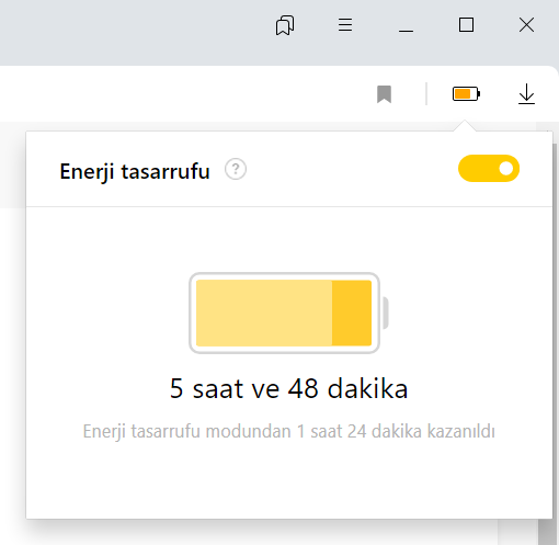 Dizüstü bilgisayarınızın pilinin çok hızlı bitmemesi için enerji tasarrufu modunu etkinleştirin. Bu modda Browser: