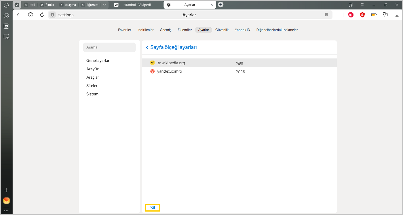 Değiştirilmiş ölçek verileri Yandex Browser'nde kaydedilir. Sayfa tekrar açıldığında seçtiğiniz ölçekte görüntülenecektir.