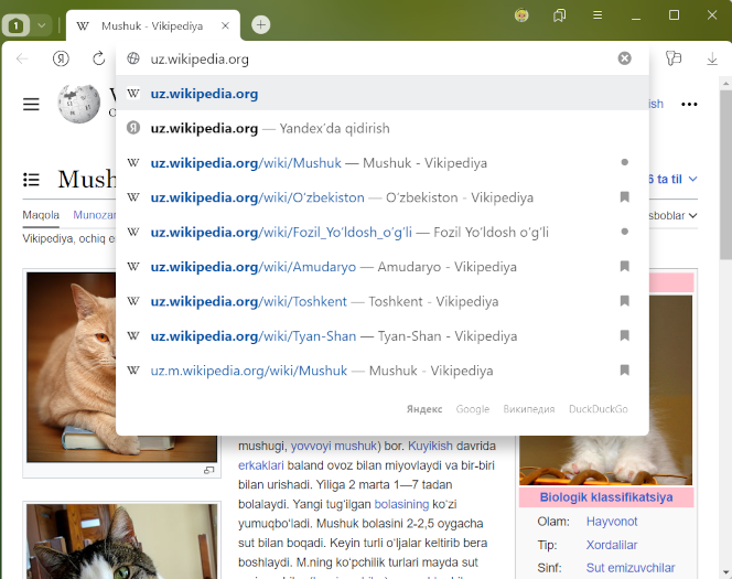 Manzil satriga qidirish soʻrovlarini kiritish mumkin — Brauzer sizga nima kerak ekanini oʻzi tushunadi.