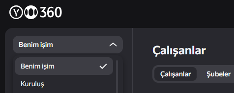 Bir kurumu değiştirmek için sol panelde açık olan kurumun adına tıklayın ve geçiş yapmak istediğiniz kurumu seçin.