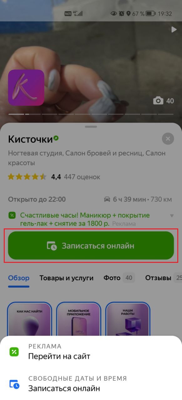 The probability of impressions is calculated individually for each user based on the quality of the organization's services (its rating and reviews) and the content of the organization profile. For better chances at top ad placements, choose the right categories in your organization profile, specify key features, and add a catalog of products and services. The more data you provide and the better its quality, the more likely you are to attract customers.