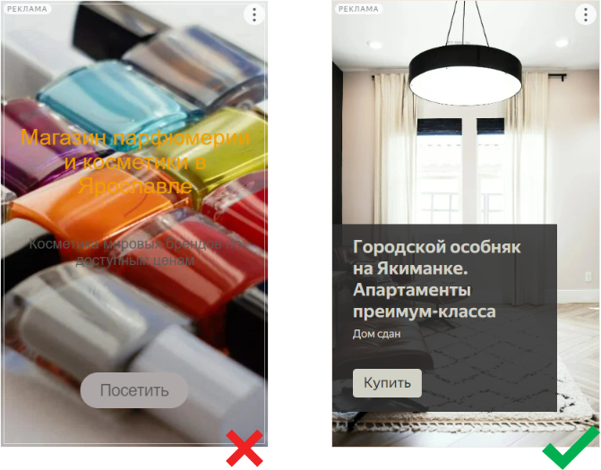 All information required by law and Yandex Ad Serving Rules must be present on the banner, including age restrictions and notices. They must not be located in the upper part of the banner. The information must be clearly visible and easy to read.