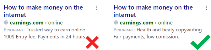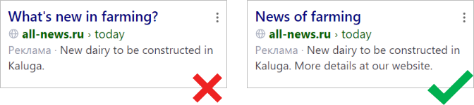 Avoid general keywords that do not precisely describe your product or service, e.g.: buy, apartment, discount. Replace them with keywords that relate directly to the subject of your ad: buy discount carseat, buy apartment in the center of Moscow, and so on.