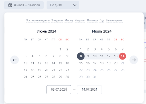 Displays data for a specific period selected in the calendar. It helps you quickly assess the effectiveness of different ad types.