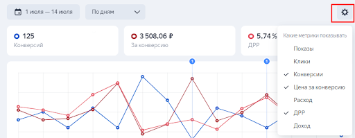 If you don't need all of the displayed data, click the metrics you wish to hide or the gear icon in the corner. Grayed-out boxes and deselected metrics are excluded from the chart.