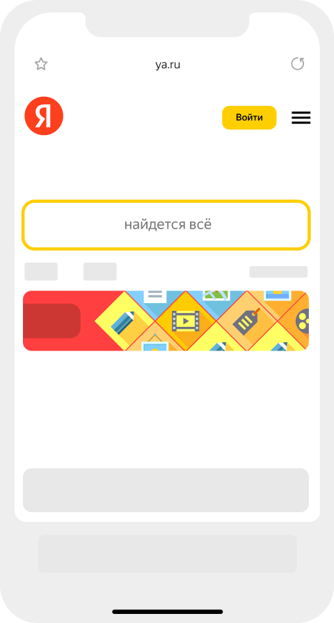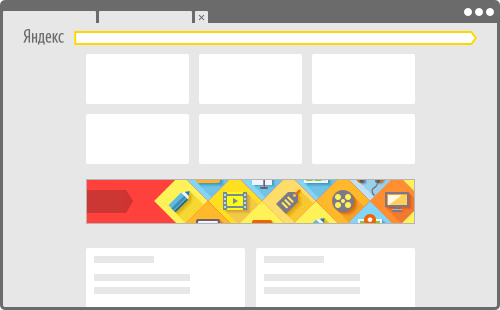 An auction-based banner under the search bar, paid per impression. You can place this display banner in the full and mobile versions of ya.ru, on a new Yandex Browser tab, and on the Yandex Advertising Network sites. This can help you improve your brand awareness, increase customer loyalty and interest in the brand, and expand your reach. Payment is per 1000 impressions.