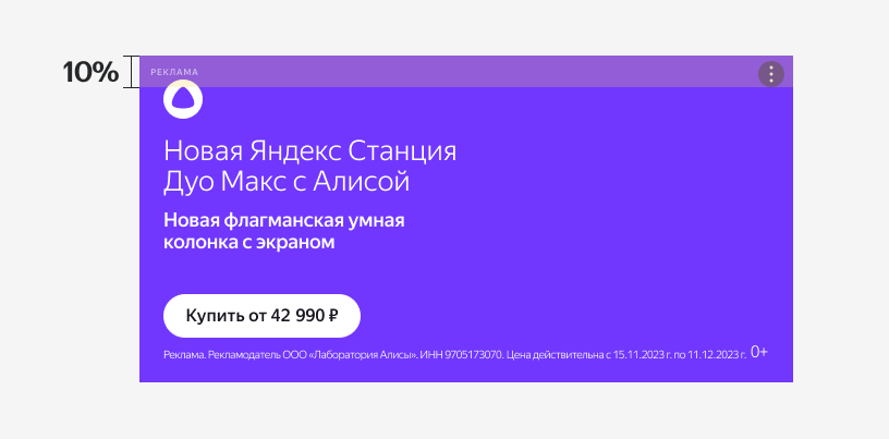 When building your creatives, keep in mind that the interface elements may overlap the top (safe) area. Therefore, don't place any text, logo, or other elements there.
