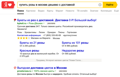 Yandex Direct ads are served when a user's search contains a keyword that you set in its entirety.